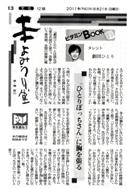 「こころに効くカルチャー案内」のコーナーで、『「ひとり時間」で、すべてがうまく回りだす!』紹介